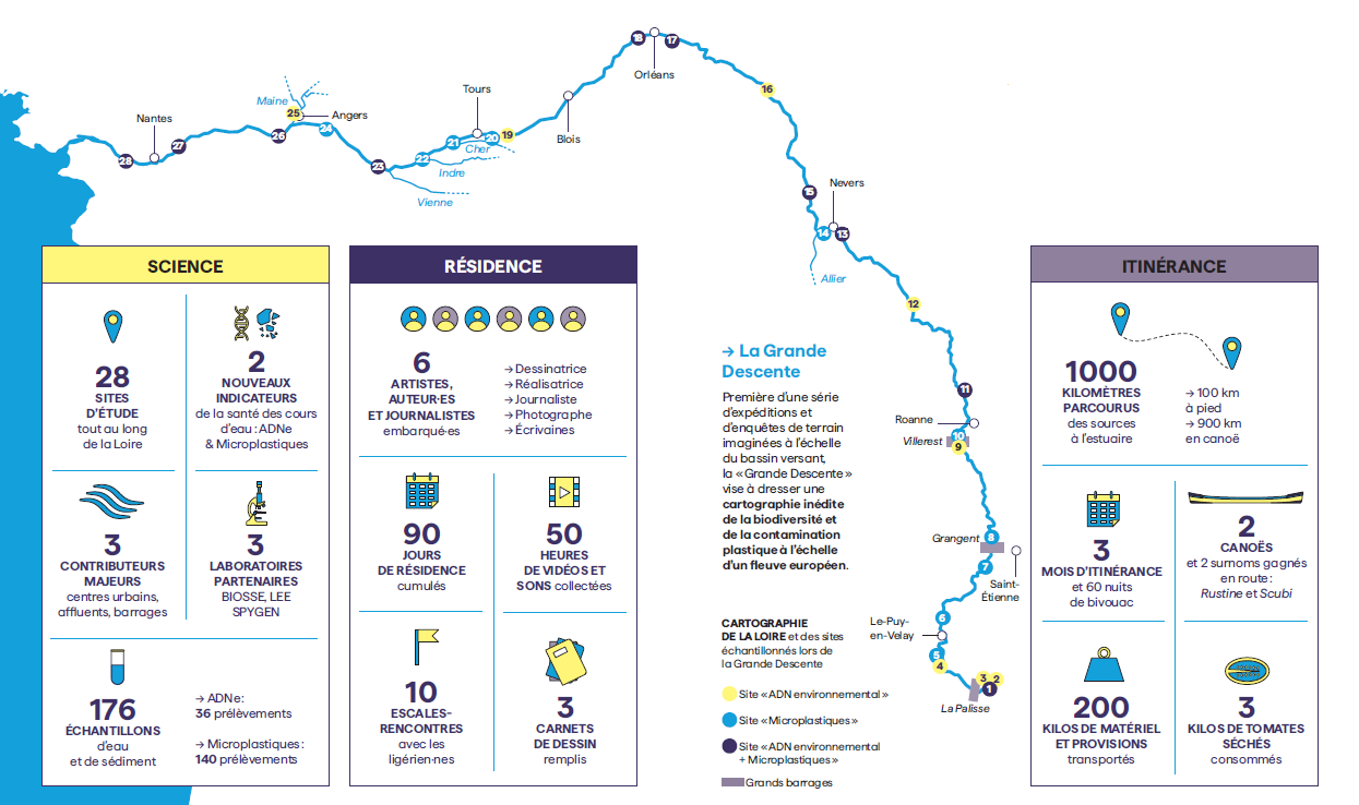 La Grande Descente  – cartographie des sites d’échantillonnage et chiffres clefs